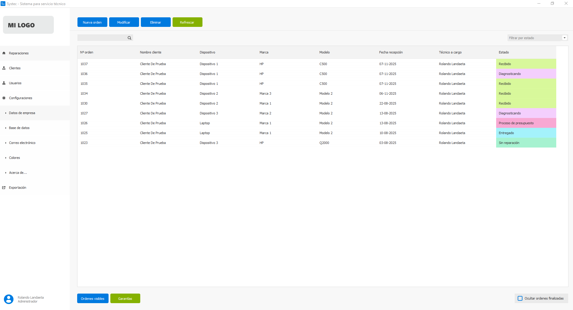 - Variedad de tipos de estados para las ordenes. Cada estado puede tener un color personalizado.