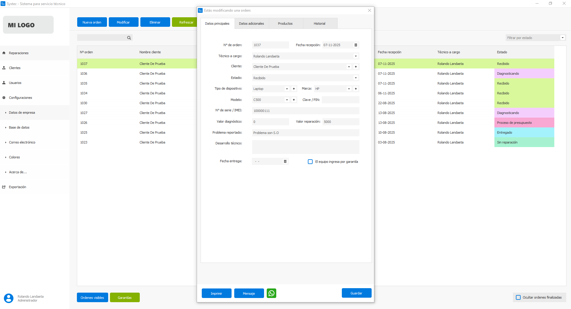 Gestiona tu servicio técnico de manera inteligente y organizada, con un diseño amigable que simplifica el seguimiento de reparaciones y clientes.